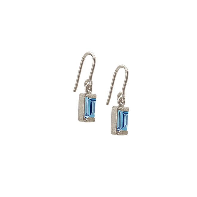 Håndlaget ørepynt i sølv med blå topas. Laget i Danmark.